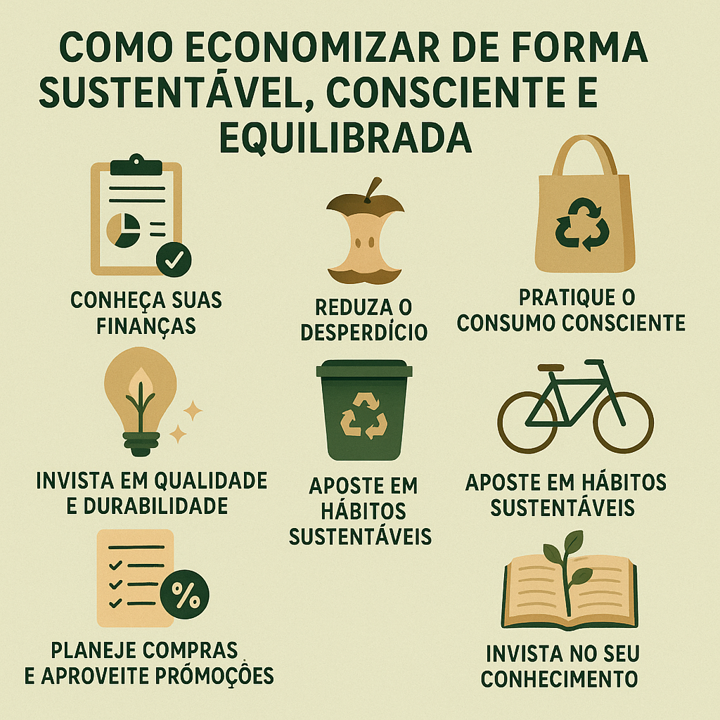 Economizar de forma sustentável é administrar seu dinheiro com inteligência, evitando desperdícios, escolhendo produtos duráveis e reduzindo o impacto negativo no planeta.